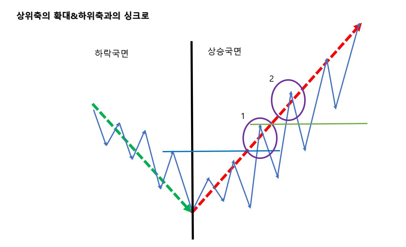 다시 원래의 상승트렌드로 복귀(빨간점선)으로 나타내었습니다.